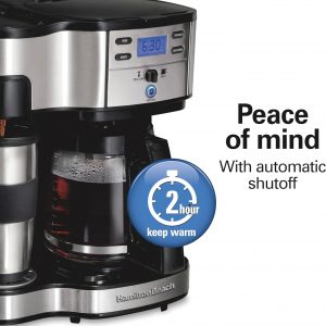 Hamilton Beach 2-Way Programmable Coffee Maker, 12 Cup Glass Carafe And Single Serve Coffee Maker, Black with Stainless Steel Accents, 49980RG