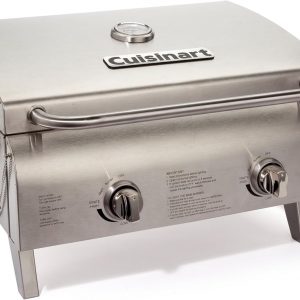 Cuisinart Chef’s Style Tabletop Portable Propane Gas Grill, 20,000 BTU Stainless Steel 2-Burner Outdoor BBQ Grill for Camping, Tailgates, BBQ, Hassle-Free Setup