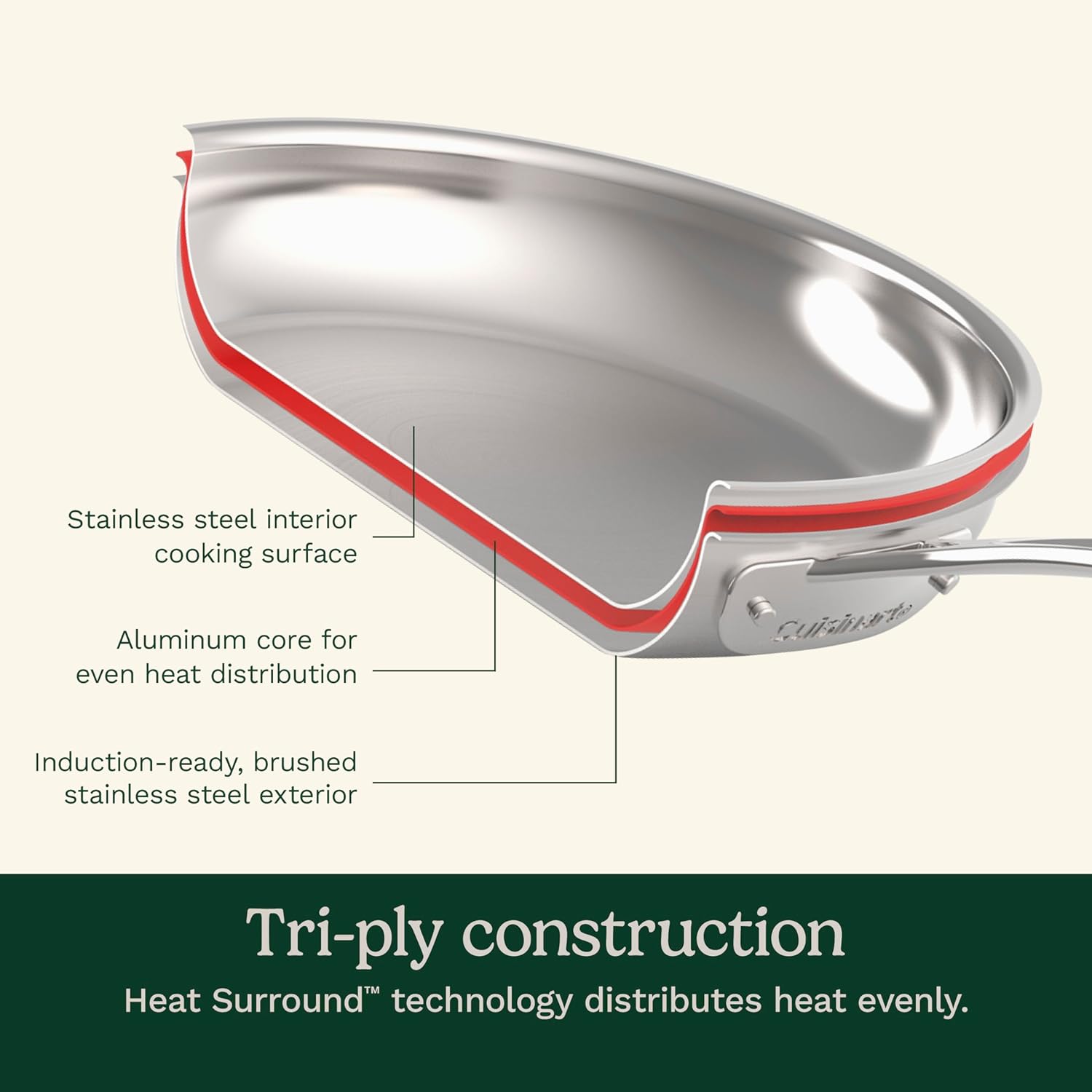 • DURABLE DESIGN: Professional triple ply construction features a core of pure aluminum and brushed stainless finish. Heat Surround technology allows for even heat distribution along the bottom and sidewalls of the cookware.