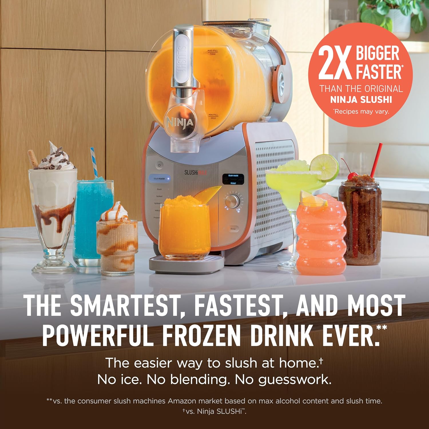 • #1 SMART FROZEN DRINK MAKER: Ninja pioneered the smart frozen drink maker category and SLUSHI MAX XXL is the smartest, fastest, thickest, and most powerful* consumer slush machine on the Amazon market. (*Based on max alcohol content, slush time)